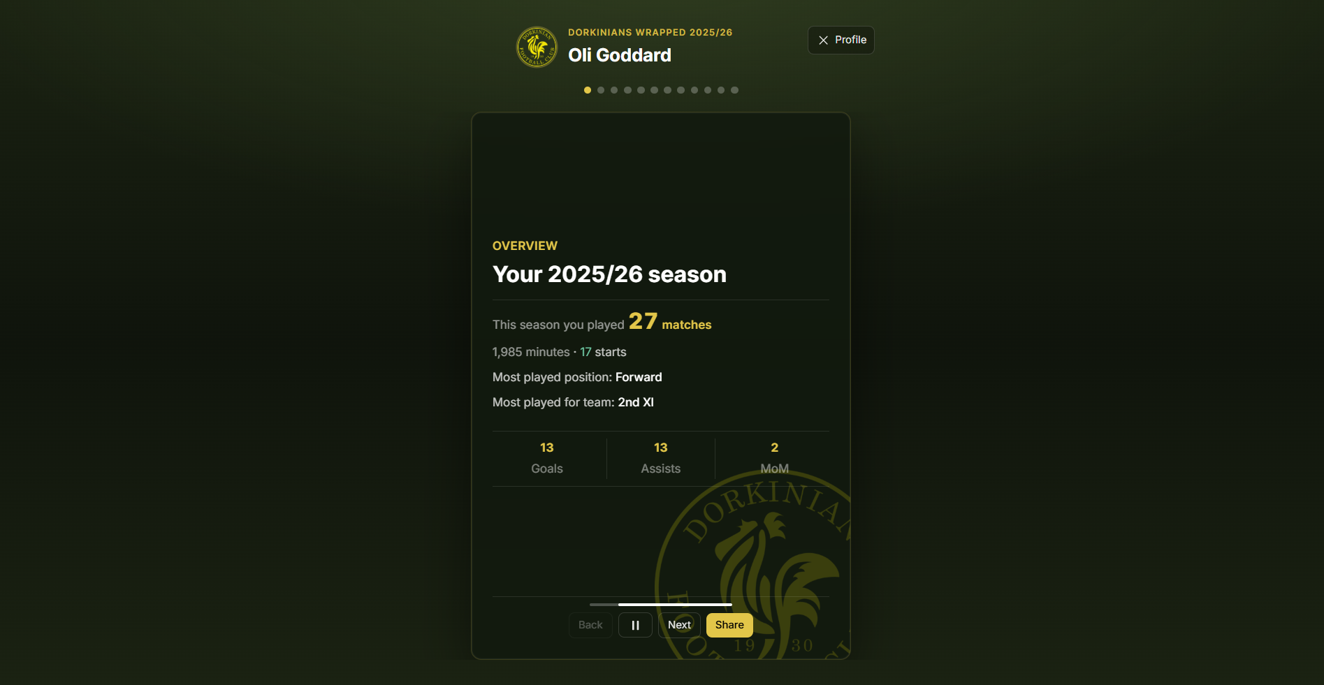 The Player Profile page gives you a focused summary of a single player, bringing key highlights into one place.
